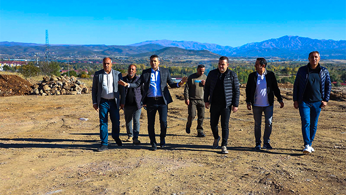 Bingöl Belediye Başkanı Erdal Arıkan, Ticaret ve Sanayi Odası Başkanı Kadir Çintay ve iş temsilcileriyle birlikte, eski Kadın Doğum ve Çocuk Hastalıkları Hastanesi bölgesinde; yeni sebze hali, oto galericiler ve toptancılar için belirlenen arazide gerçekleştirilen çalışmaları yerinde inceledi.